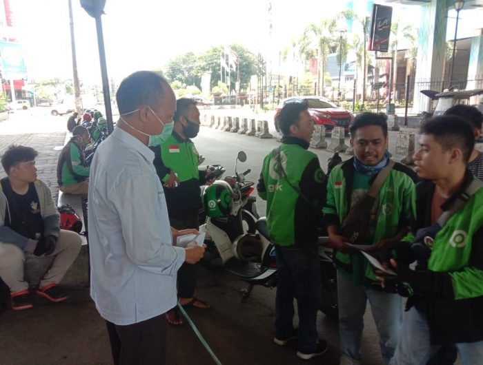 Kegiatan tersebut, dilaksanakan dengan membagikan bantuan uang ke 80 ojol dan tukang becak.