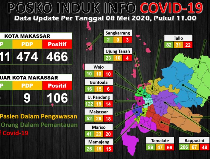 MAKASSAR, BERITAPEDOMAN.com – Kasus positif virus corona (Covid-19) di Kota Makassar per 8 Mei 2020 telah mencapai 466 kasus.