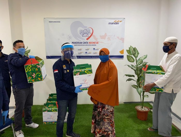 MAKASSAR, BERITAPEDOMAN.com – Pegawai Mandiri Group di berbagai wilayah Indonesia serentak membagikan bantuan sembako dan makanan siap saji kepada masyarakat yang terdampak pandemic Covid-19, Minggu (10/5/2020).