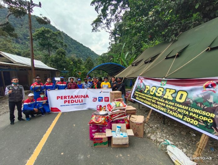 PALOPO, BERITAPEDOMAN.com – Pertamina bergerak cepat dalam menyalurkan bantuan bagi masyarakat korban bencana longsor yang terjadi di Jalan Trans Sulawesi Palopo – Toraja. Bantuan ini diserahkan secara langsung oleh Fuel Terminal Manager Palopo, Bushro Sihabuddin, pada Minggu (28/6/2020) kemarin.