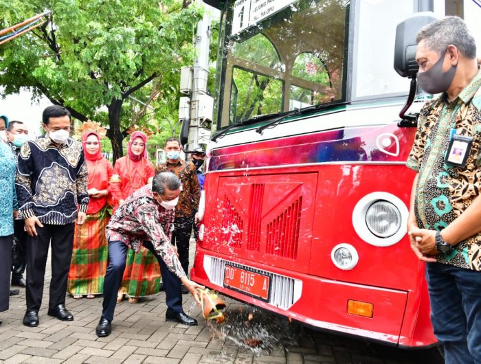MAKASSAR, BERITAPEDOMAN.com – Demi mendorong Kota Makassar menjadi Kota Wisata, Pemerintah Kota (Pemkot) Makassar kini menghadirkan inovasi berbasis layanan transportasi yakni Bus Wisata Metro yang resmi dilaunching oleh Gubernur Sulsel, Nurdin Abdullah, di Anjungan Pantai Losari, Kamis (3/12/2020).