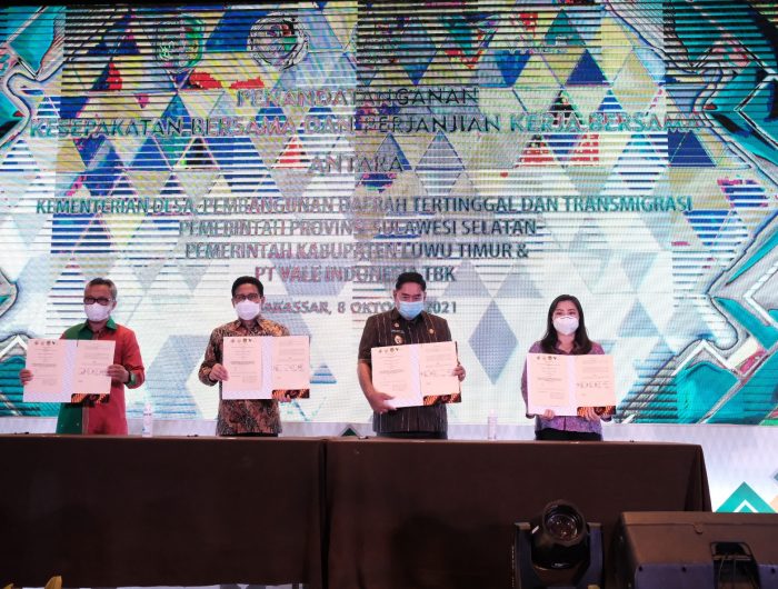 Penandatangan MoU ini, selain dilakukan Presiden Direktur (CEO) PT Vale Indonesia Tbk, Febriany Eddy, Menteri Desa, Pembangunan Daerah Tertinggal dan Transmigrasi (PDTT) Abdul Halim Iskandar, juga dilaksanakan Pelaksana Tugas (Plt) Gubernur Sulsel, Andi Sudirman Sulaiman, dan Bupati Luwu Timur, Budiman Hakim.