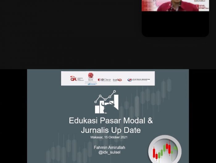 MAKASSAR, BERITAPEDOMAN.com – Dalam rangka 44 tahun diaktifkannya kembali Pasar Modal Indonesia, Bursa Efek Indonesia (BEI) Provinsi Sulawesi Selatan (Sulsel) menggelar Workshop Wartawan Daerah, melalui zoom meeting, Jumat (15/10/2021).