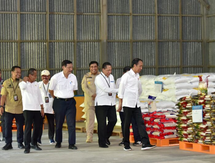MAROS, BERITAPEDOMAN.com – Presiden RI, Joko Widodo (Jokowi) meninjau dan mengecek ketersediaan beras di Gudang Bulog Batangase, di Kabupaten Maros, Kecamatan Mandai, Kabupaten Maros, Kamis (30/3/2023).