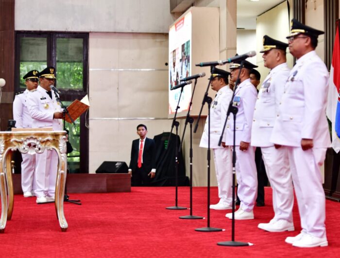 MAKASSAR, BERITAPEDOMAN.com  – Penjabat (Pj) Gubernur Sulawesi Selatan (Sulsel), Bahtiar Baharuddin, melantik 4 Penjabat (Pj) Bupati dan Wali Kota di Sulsel. Pelantikan dilaksanakan di Ruang Pola Kantor Gubernur Sulsel, Jl Urip Sumohardjo, Selasa (26/9/2023).